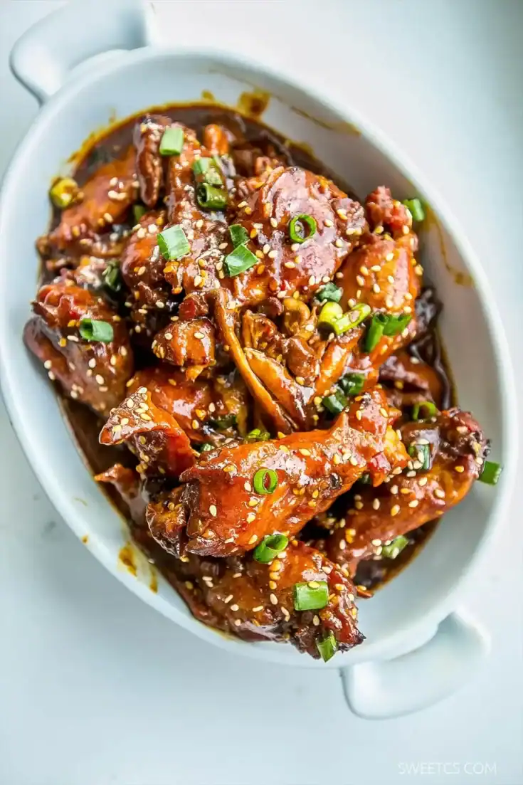 These wings are tossed in a sauce made from honey, soy sauce, rice vinegar, chili paste, onion and garlic powder, cumin, and cayenne. They cook in the crockpot until tender, soaking up a sweet, salty, and slightly spicy glaze. A sprinkle of sesame seeds and green onions on top gives them a polished, party-ready look. They’re an easy set-and-forget appetizer that works well for family gatherings, potlucks, and game day wing platters.