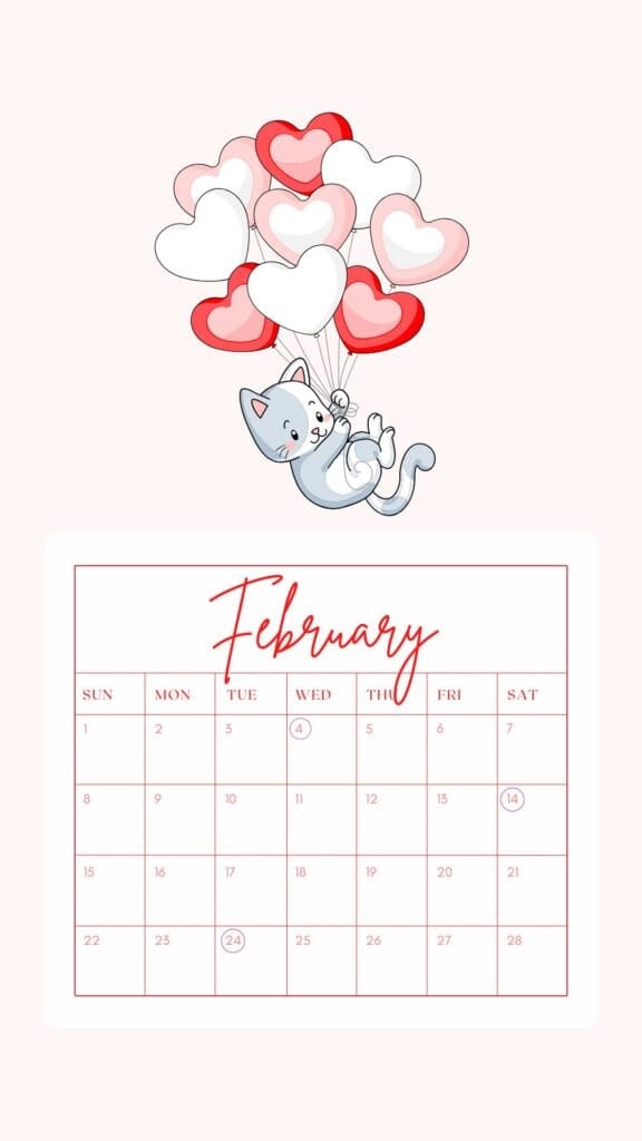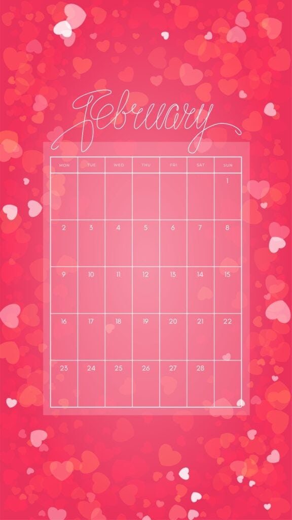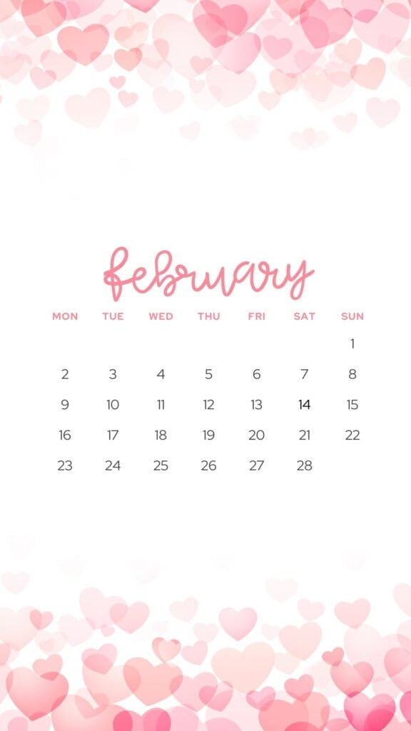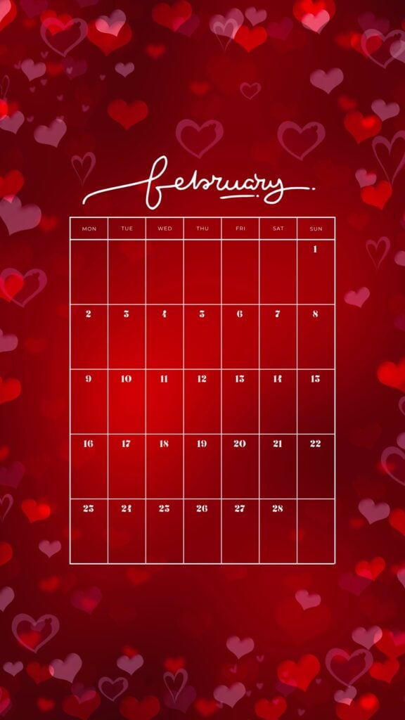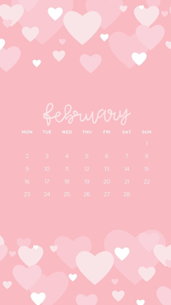 These February backgrounds are aesthetic and cute-so your screen can match the mood of the month. You'll find a mix of sweet and practical options, including several February 2026 calendars (perfect if you like seeing your month at a glance). Some are soft and dreamy with floating hearts in pink, while others go bold with red accents and heart borders.