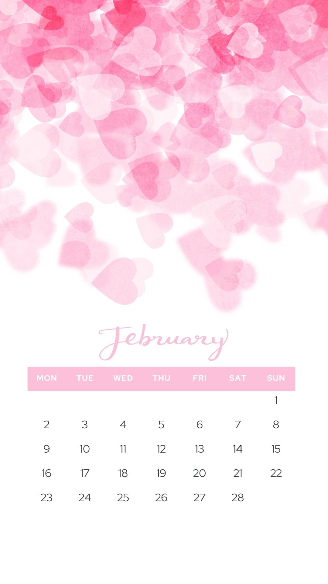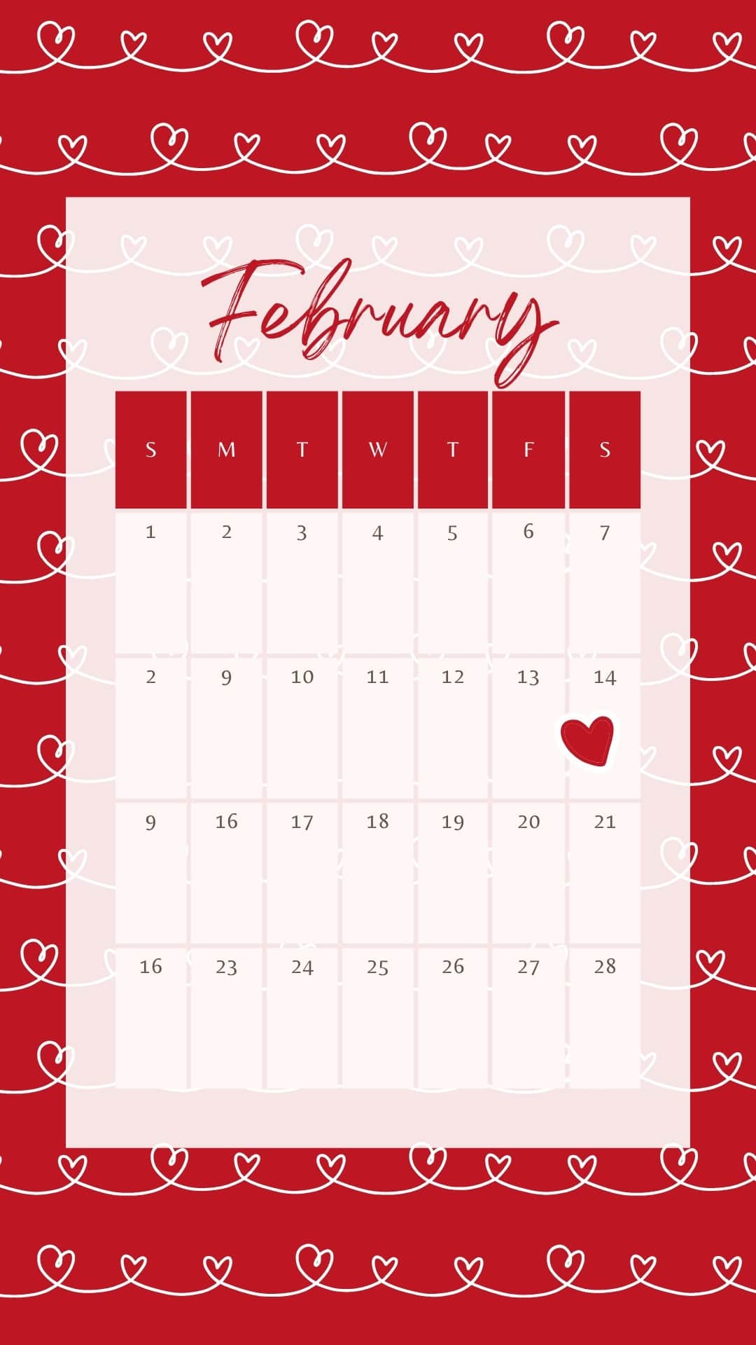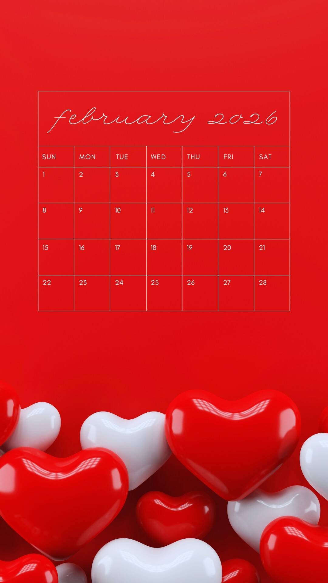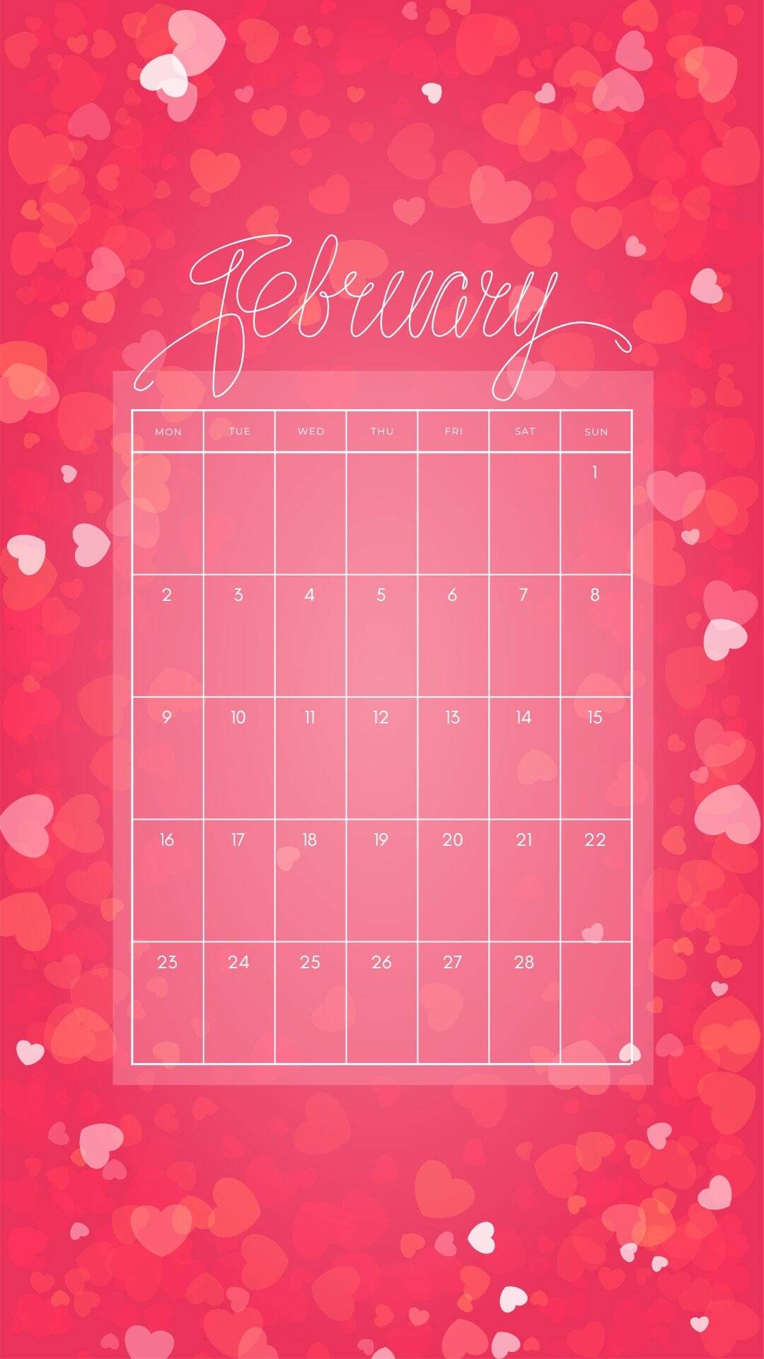 These February backgrounds are aesthetic and cute-so your screen can match the mood of the month. You'll find a mix of sweet and practical options, including several February 2026 calendars (perfect if you like seeing your month at a glance). Some are soft and dreamy with floating hearts in pink, while others go bold with red accents and heart borders.