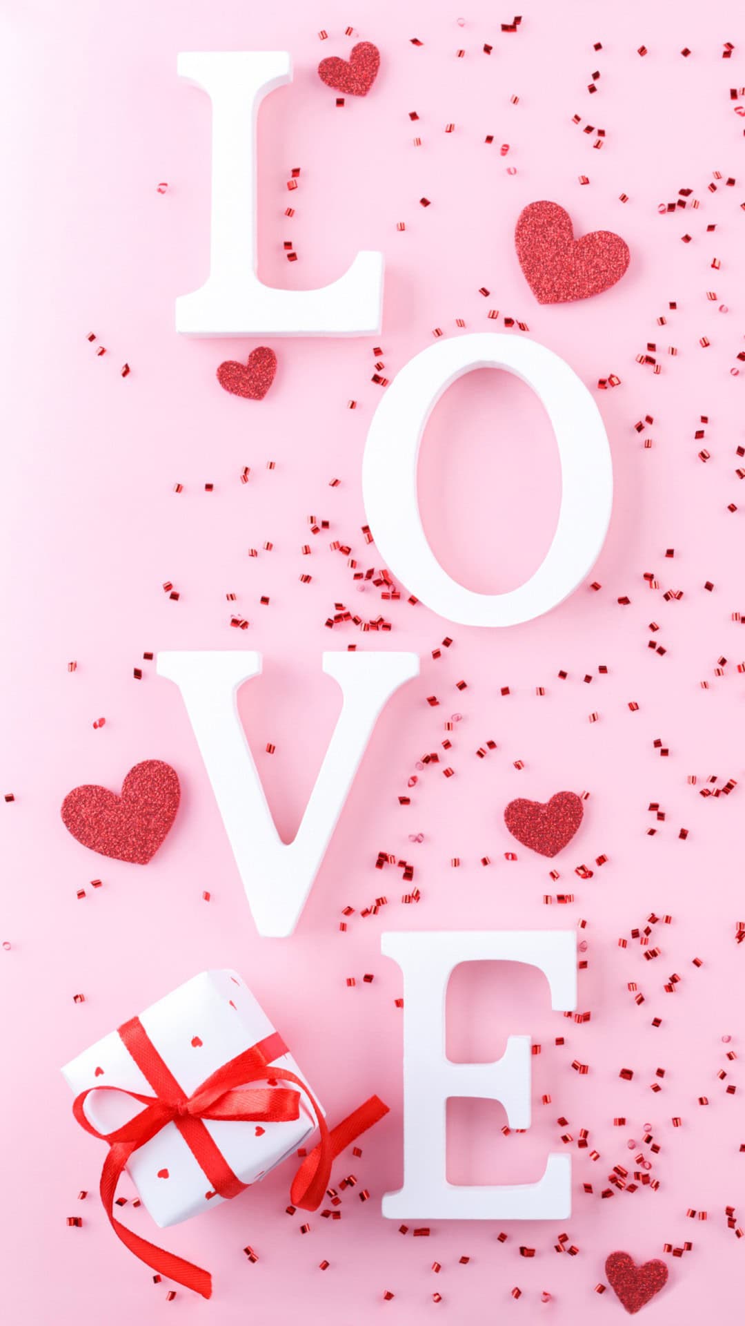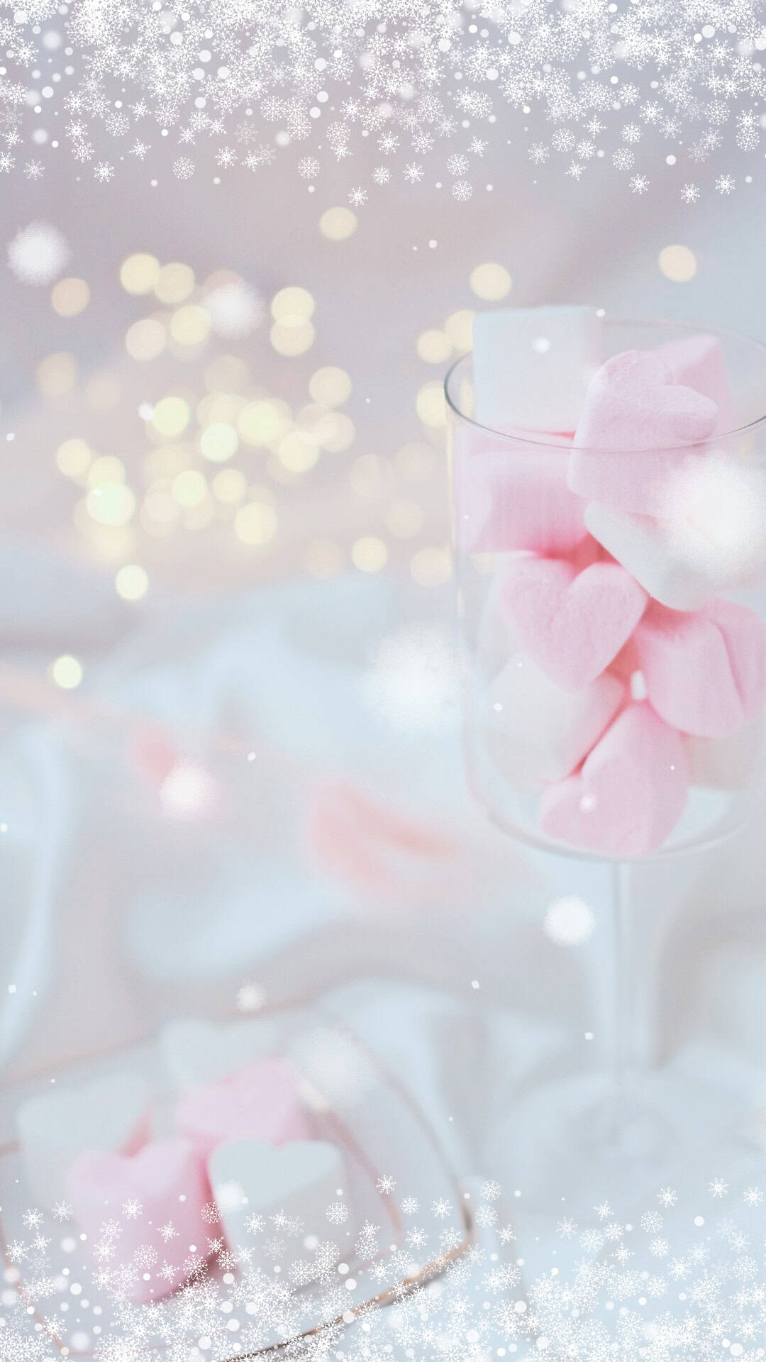 If you love a more realistic look, there are photo collage-style designs that feel like little snapshots of the season with cozy Valentine details like envelopes, candy hearts, and soft sparkly textures paired with a elegant “Hello February” scripts. They're the kind of backgrounds that make your lock screen feel festive in a subtle way. There’s also fun patterns like bows, tiny hearts, and lollipop hearts, plus romantic Valentine's Day wallpapers and even winter backgrounds like a snowy forest scene in rosy tones.